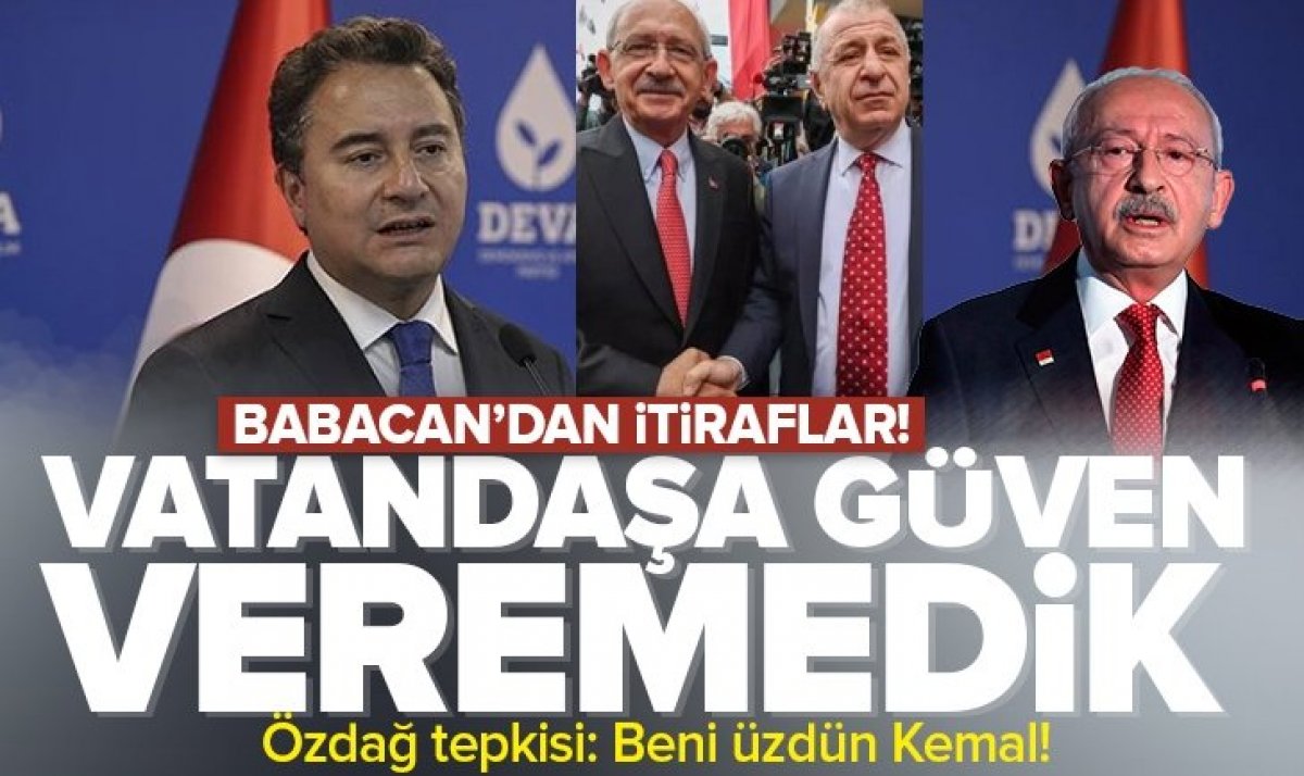 14-28 Mayıs seçimlerinde hezimete uğrayan koalisyon ittifakının ortaklarından DEVA Partisi Genel Başkanı Ali Babacan katıldığı bir programda 'muhalif' ortaklarını adeta yaylım ateşine tuttu. Ali Babacan, 6 parti olarak ülkeyi uyum içerisinde yönetebileceklerine yönelik gerekli güveni vatandaşlara veremediklerini itiraf etti. Babacan, CHP kanadından gelen 'Neden bu kadar milletvekili verildi?' türü eleştirilere ise, "CHP kendi başına herhangi bir seçime girse kazanması mümkün mü ya? Siz hayal mi görüyorsunuz? Bu ülke öyle bir ülke mi..." dedi.